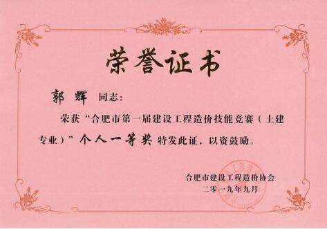 2019年个人一等奖--一级造价师郭辉