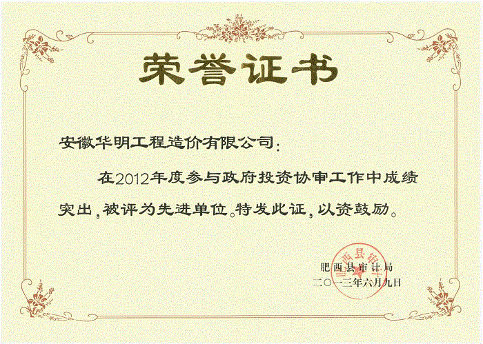 2012年度被肥西县审计局评为“先进单位”