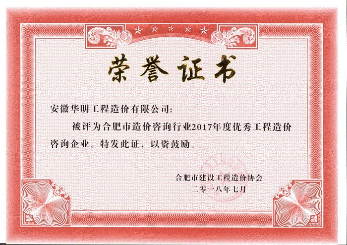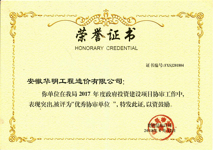 2017年度被肥西县审计局评为“优秀协审单位”