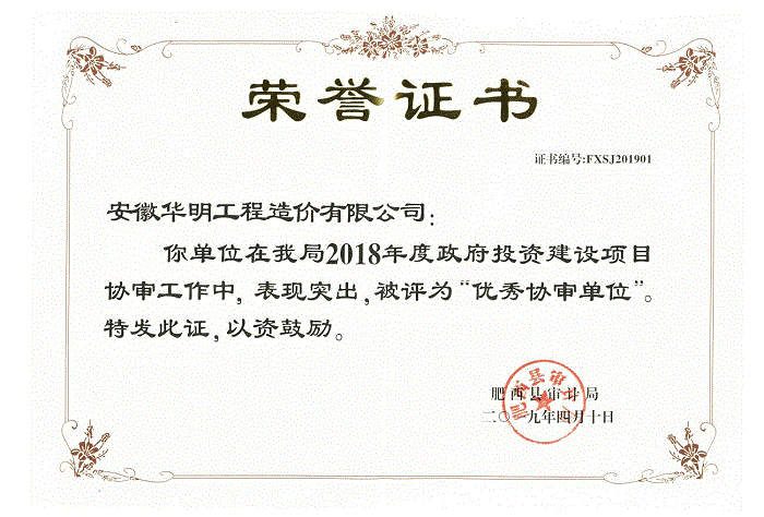 2018年度被肥西县审计局评为“优秀协审单位”